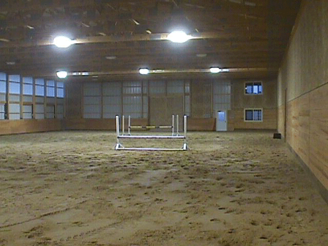 SonRise Stables offers three riding rings which include a 70x150 foot indoor sand arena with tapered 4-foot high competition walls and plenty of windows that offer a great view and a pleasant breeze in the summer. Also, there is a 20x60 meter dressage ring with a gazebo to simulate the judge's booth for young horses. We have a large jumping ring with sand and rubber footing. There is lots of space for hacking out for enjoying life outside of the ring.