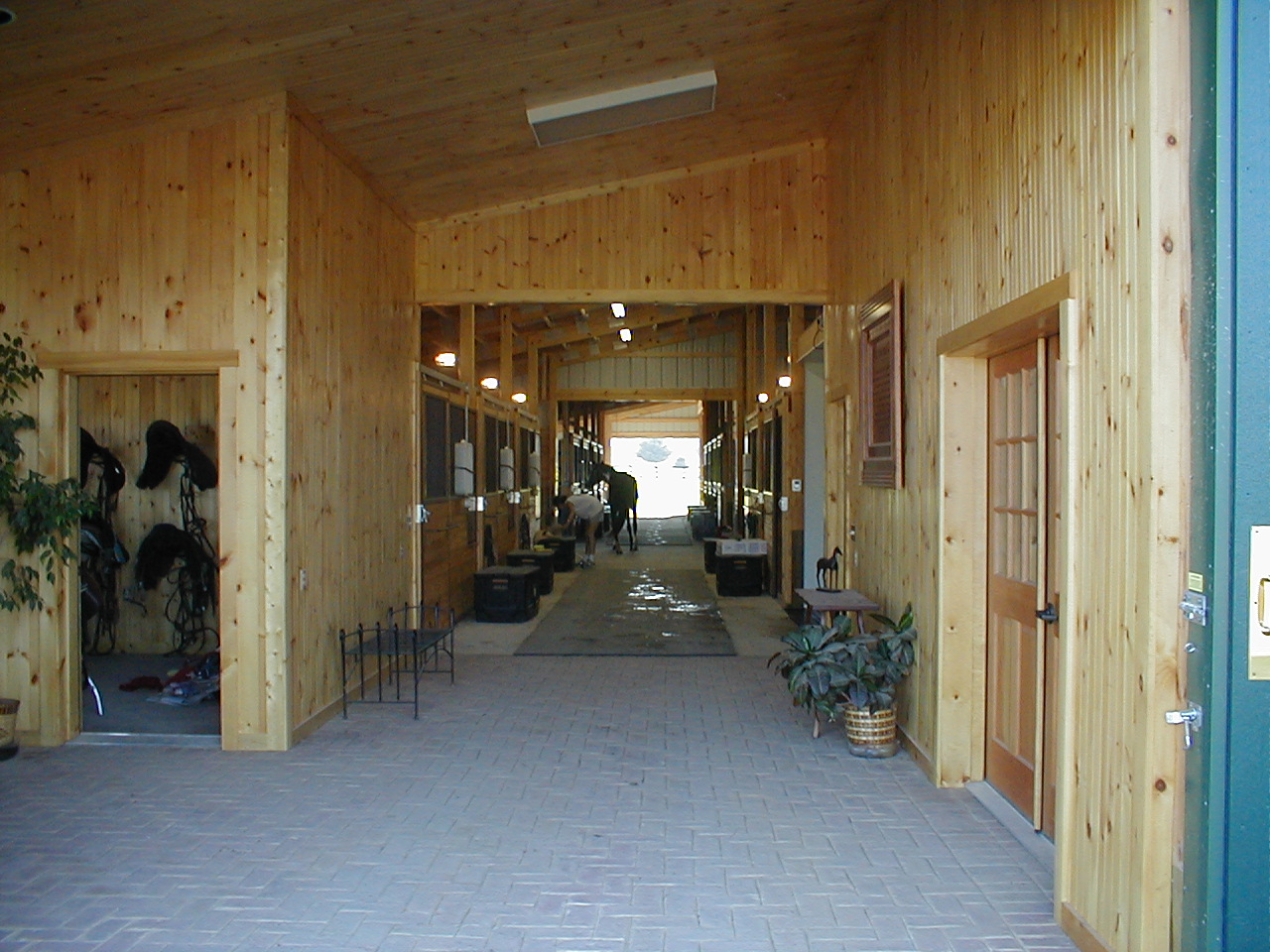 The barn includes a heated wash stall with hot and cold water, a heated/air conditioned tack room and viewing room and two tack up areas. The stalls are 12x12 and fully matted. Each stall has a Nelson automatic waterer, swing-out feeder, and vented partitions. Horses also enjoy access to our spacious pastures with plenty of turnout time. Your horse will enjoy luxury and comfort!